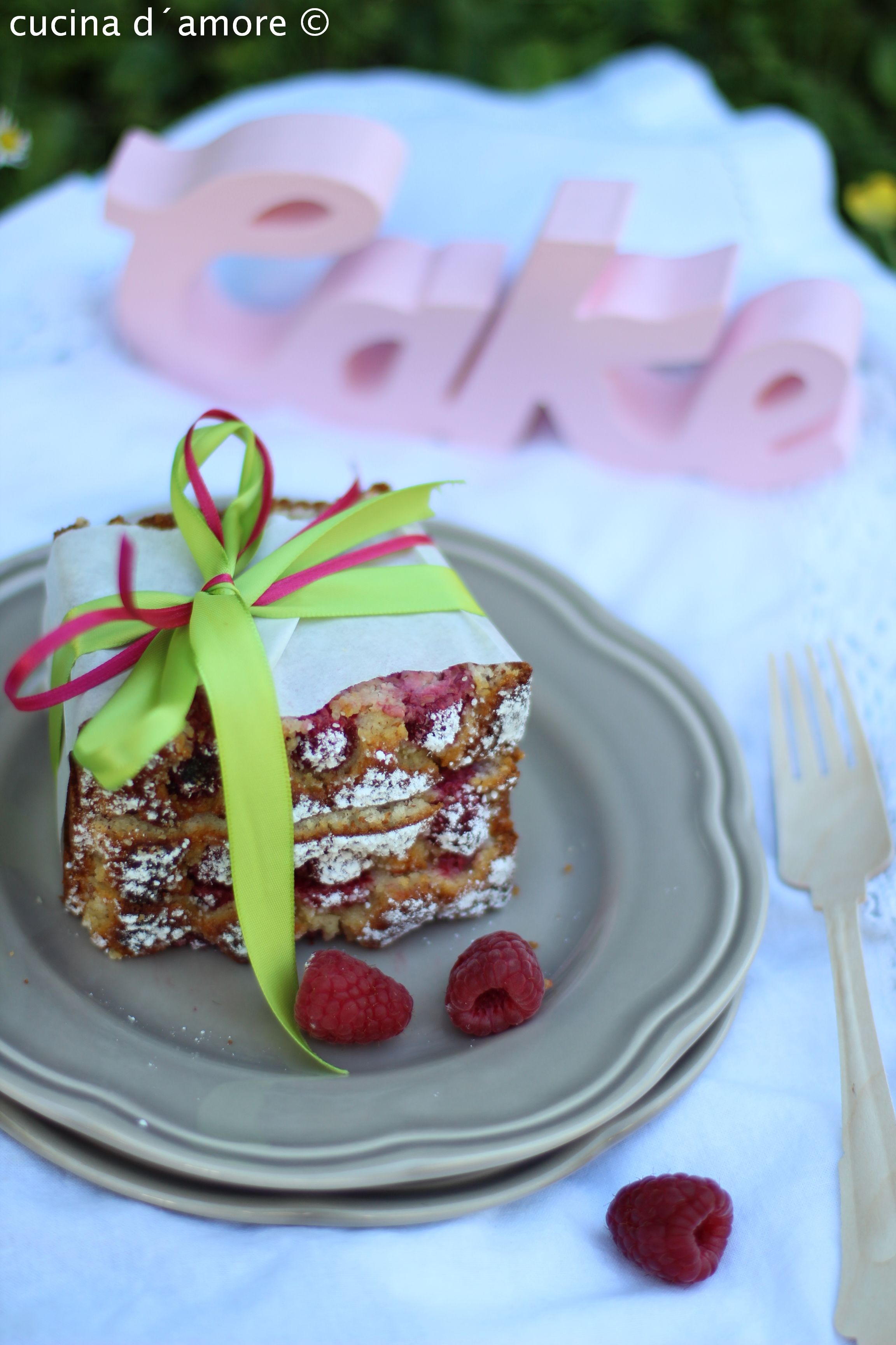 Es gibt einen leichten Himbeer-Grieskuchen der perfekt für ein Picknick im Grünen geeignet ist.