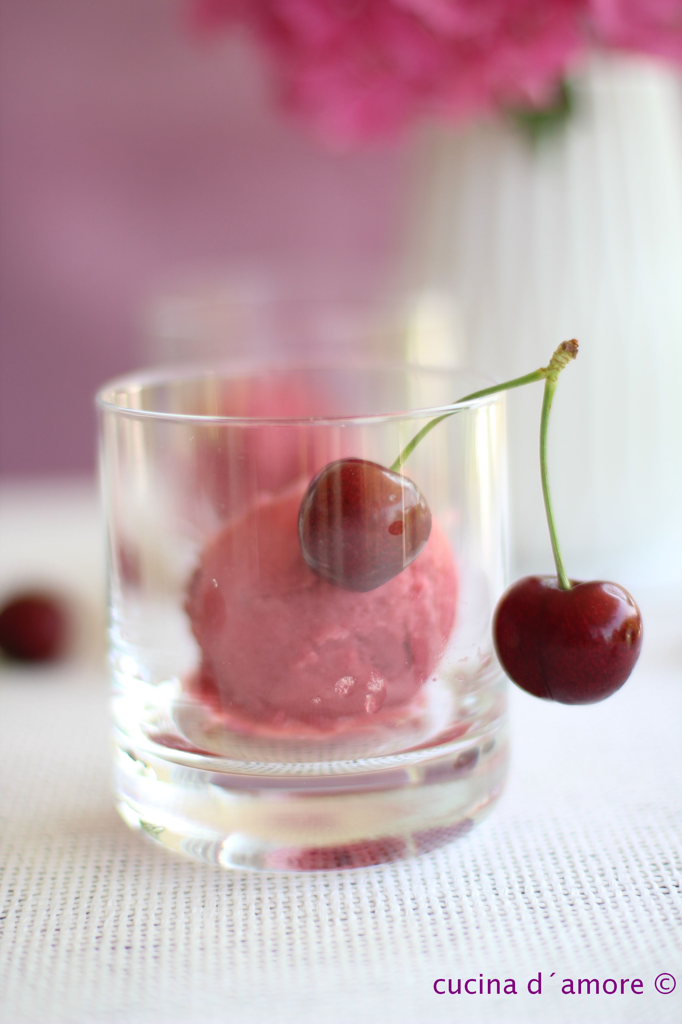 Am bekanntesten ist der Klassiker, sorbetto limone und hier gibt es heute ein sorbetto ciliegie, also ein Kirschsorbet.