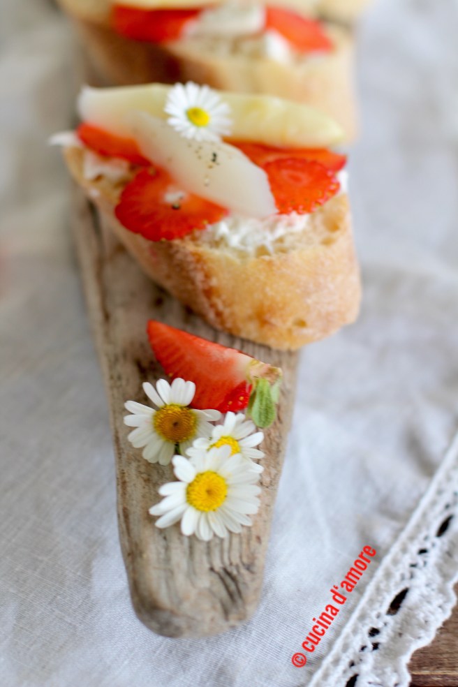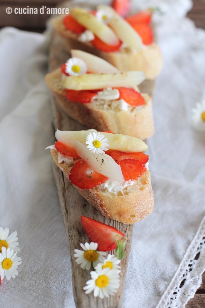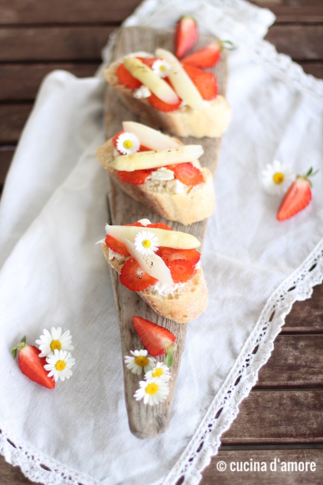 und habe euch heute Bruschetta mit Spargel, Erdbeeren und Burrata mitgebracht.