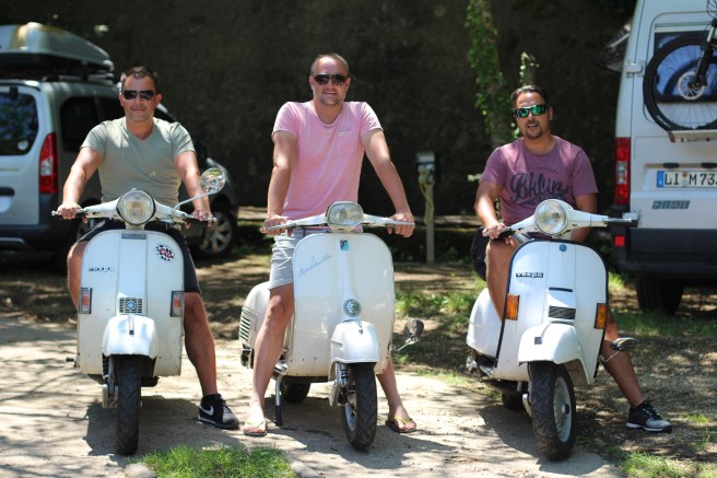 So, unser Busle wäre wieder einsatzbereit und wir könnten unser Tour fortsetzen. Wenn da nicht unsere überaus netten Camping Nachbarn wären. :-) Da fährt man bis an die Amalfiküste und trifft dort vier junge Männer aus unserer Nachbarstadt am Bodensee. Die kannten wiederrum meinen Herzmann von früher. Sie haben ihre Vespa´s mitgenommen und haben die Amalfiküste mit der Vespa erkundet. Jeden Tag nach ihrer Tour haben sie sich nach dem aktuellen Stand unseres Busles erkundigt.