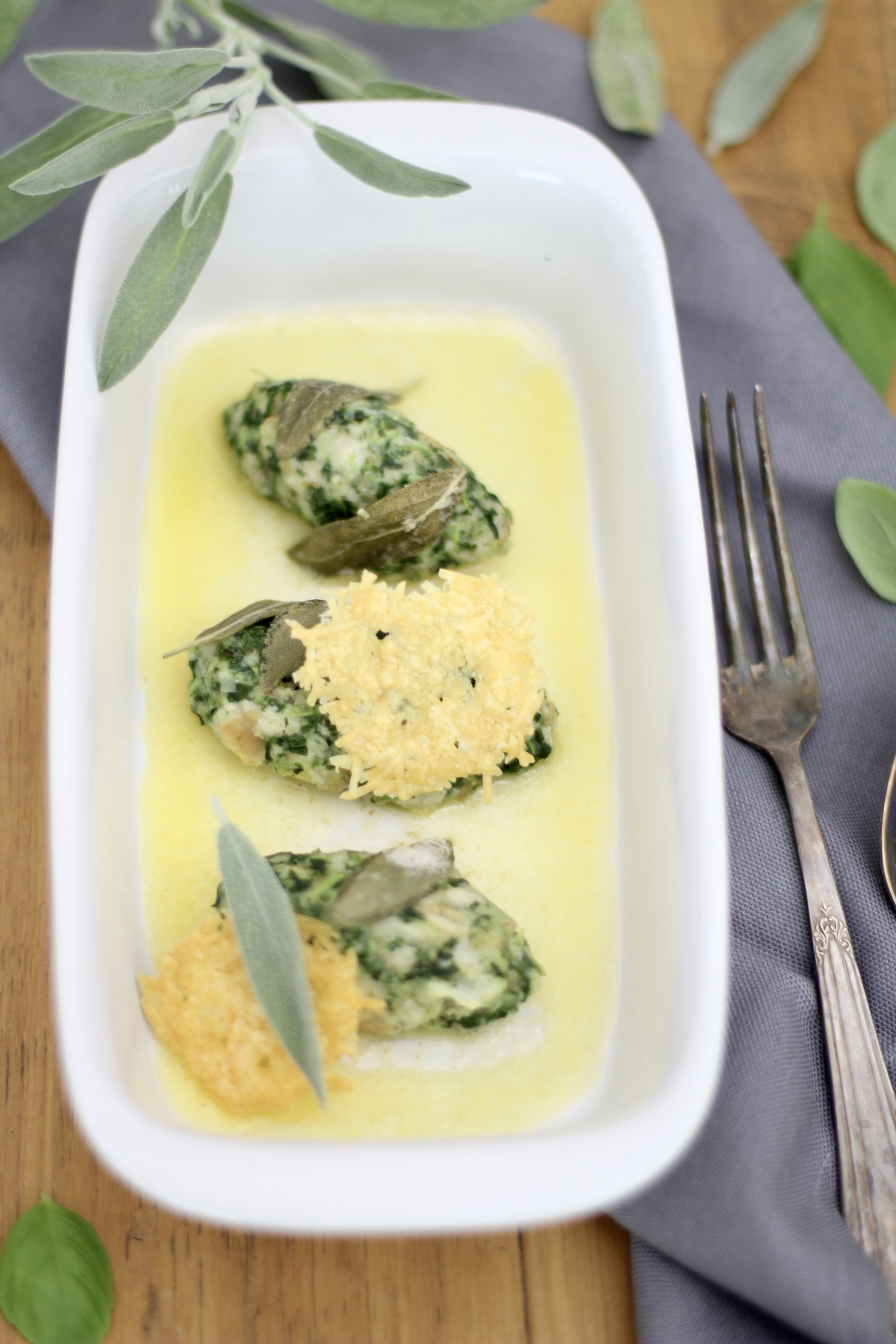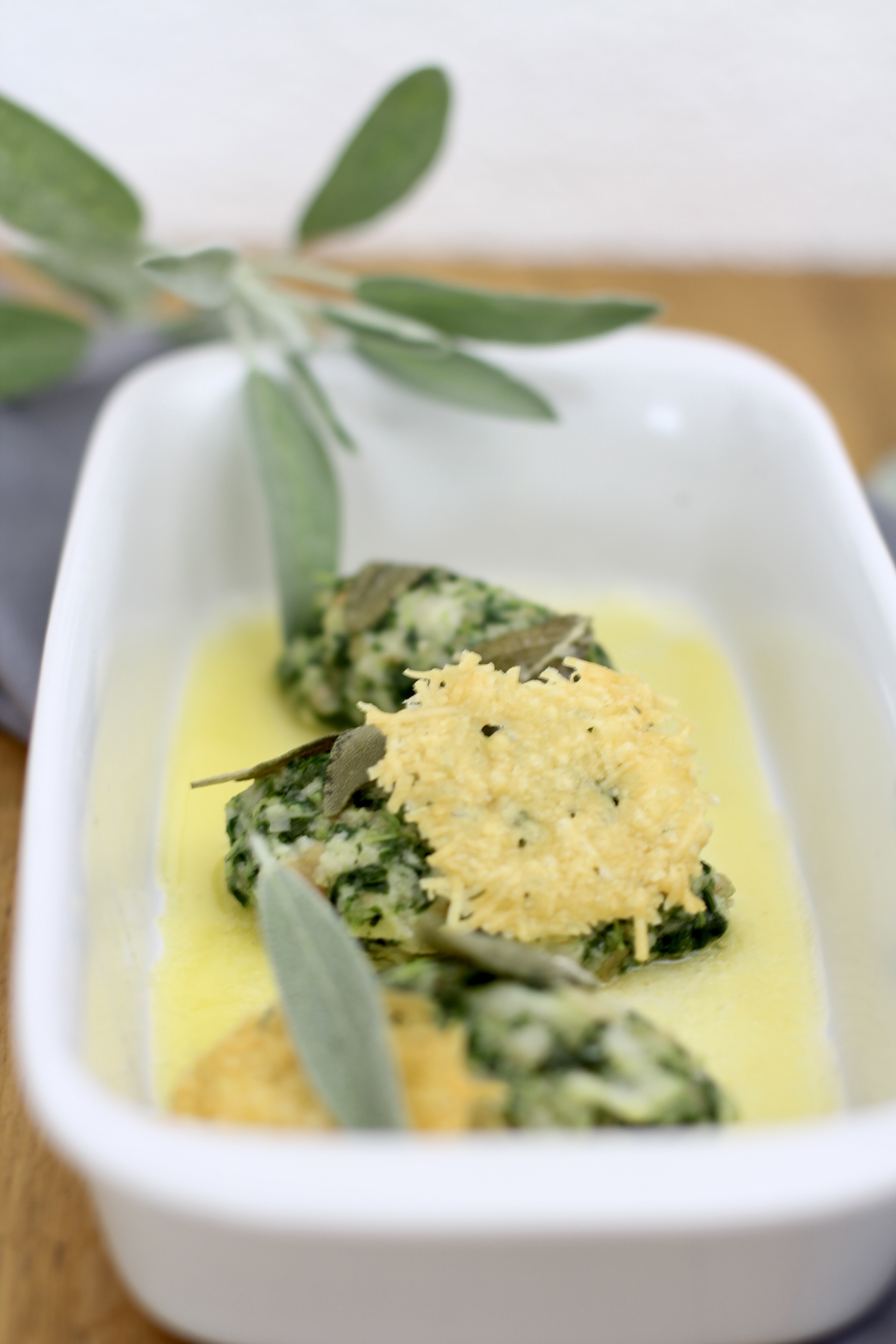 Sie werden einfach nur mit Salbeibutter und Parmesan serviert.